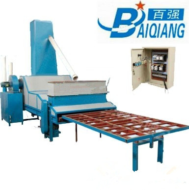 高效的流水線生產(chǎn)方式,只要將玻璃平放在小車上,玻璃經(jīng)過密閉的自動(dòng)噴砂區(qū)間,就能完成整個(gè)噴砂過程,一次完成。免去了大功率空氣壓縮機(jī)的使用。噴砂機(jī)噴砂的原理就是利用安裝在滾桶上高速旋轉(zhuǎn)的鋼刀所產(chǎn)生的離心力,使金剛砂高速向加工玻璃表表面擊噴的方式設(shè)計(jì),完全顛覆了傳統(tǒng)手工噴砂的方式。價(jià)格僅為同類產(chǎn)品的1/10,使用效果卻達(dá)到了同類產(chǎn)品的水平,簡(jiǎn)單說噴砂機(jī),就是用離心力和砂混合把要噴掉的東西噴掉。本產(chǎn)品可以用于大理石、不銹鋼和玻璃雕刻;境绦蚴沁@樣的: